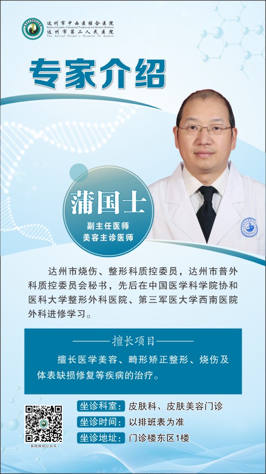皮肤性病科是四川大学华西医院皮肤及川北医学院皮肤科学科联盟科室,是达州市整体实力较强、中医特色优势突出的皮肤性病专科,承担着临床诊疗、教学、科研等工作,是全市中西医结合治疗皮肤、性病的医、教、研中心。目前共有医师7名,其中5名医师为硕士研究生,是一支学历层次较高、理论知识丰富、专业技术扎实过硬的专业诊疗团队。