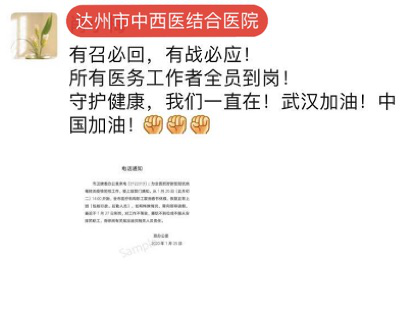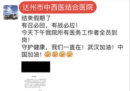 大年初二,本该是阖家团圆,万家灯火、共享天伦,喜迎春节之际,面对新型冠状病毒感染的肺炎疫情,达州市中西医结合医院党政领导班子迅速把思想和行动统一到党中央和省委、市委的决策部署上来,坚持把人民群众生命安全和身体健康放在第一位,领导干部靠前指挥,党员模范冲锋在前,全体医护及行政后勤人员接到召唤,立刻结束春节假期,迅速返回工作岗位,全员就位,投入防控工作,筑起疫情阻击战坚固长城。