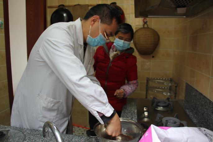 考虑到村民聚集等不安全因素,我院党委办工作人员和制剂室负责人随同驻村干部将汤药挨家挨户送到村民手中,指导他们正确服药,逐一叮嘱注意事项,积极宣传新型冠状病毒肺炎疫情防护知识。