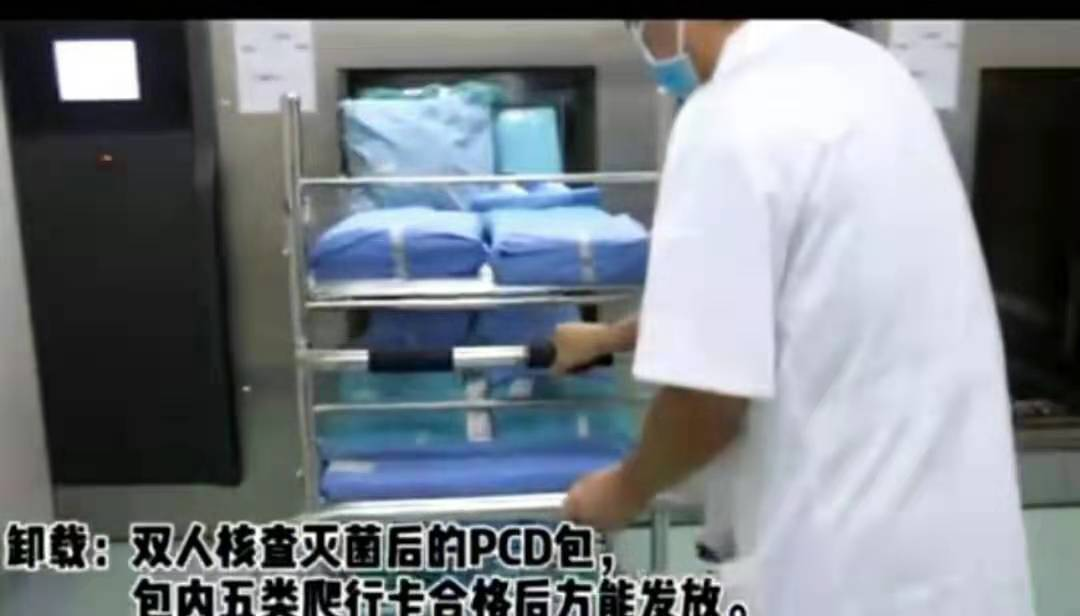 13:00-14:30,值班护士与消毒员双人查对灭菌合格后对灭菌包进行卸载。