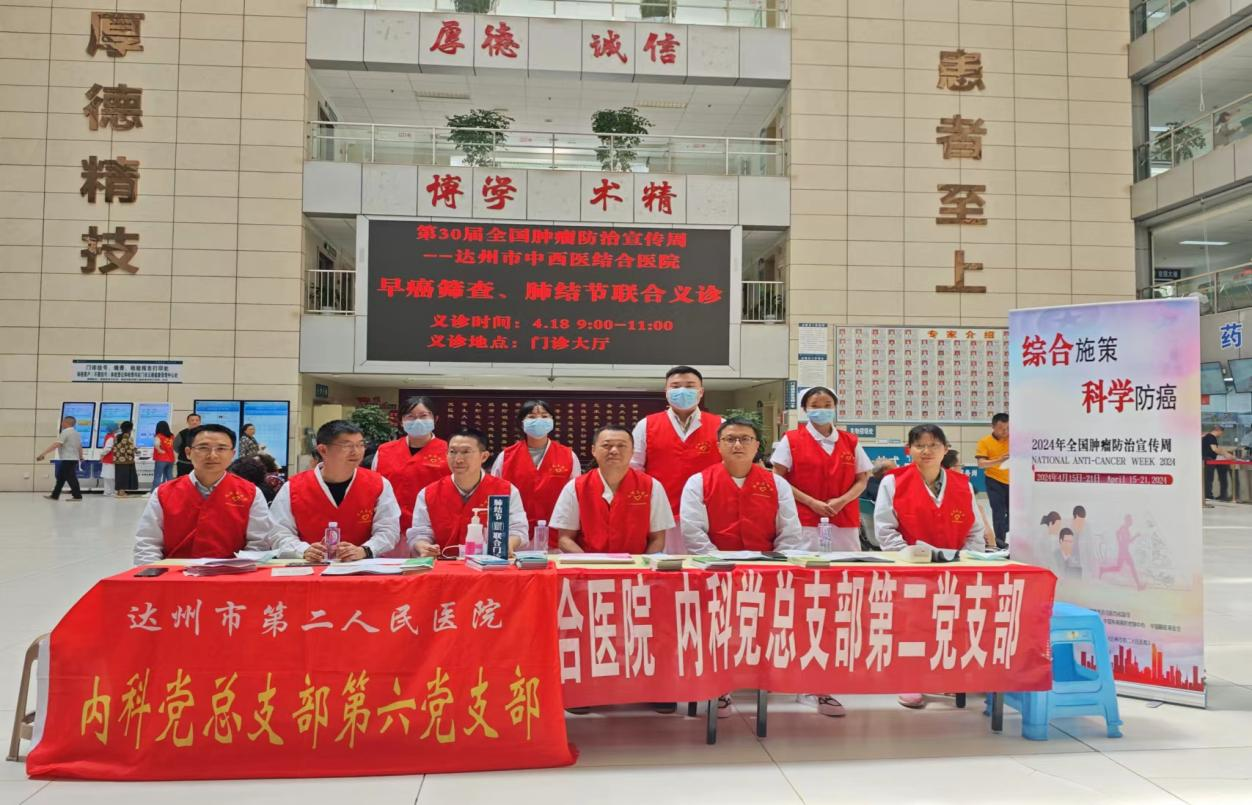 4月15-21日是第30个全国肿瘤防治周,为进一步提高公众对肿瘤防治的认知和意识,加强肿瘤防治知识的科普和宣传,我院内科第六党支部(肿瘤血液科)结合党日活动,联合多个临床科室,于4月17日-18日举办主题为“综合施策,科学防癌”的线上+线下义诊宣传活动。