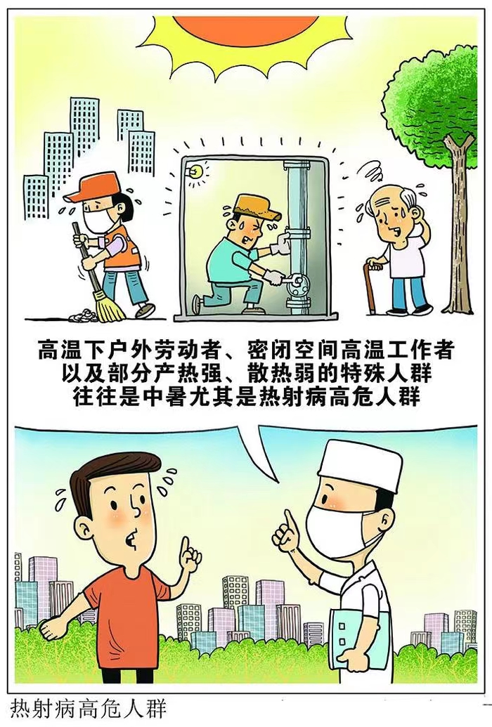 2、老年人(>65岁)、婴幼儿和儿童、慢性疾病和精神疾病患者、从事户外工作及户外体育运动项目的人员等是高温中暑的高危人群。