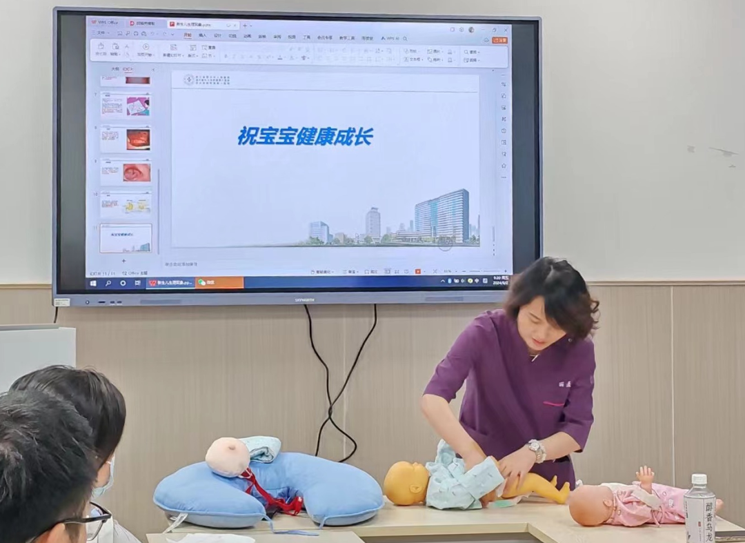 8月2日上午,达州市中西医结合医院妇产科宣教室,开展母乳喂养健康科普活动。妇产科医护人员为准爸爸妈妈们上了《如何守护宝宝的口粮》的科普课,示范了标准姿势。新生儿科医护人员为准爸妈们上了《新生儿这些现象不是病》,科普了新生儿的生理现象。新生儿科护士长为大家示范了标准的新生儿护理技能,课后分组练习实操。在有奖提问和答疑解惑环节,医护人员回答了产妇及家属的各种问题。